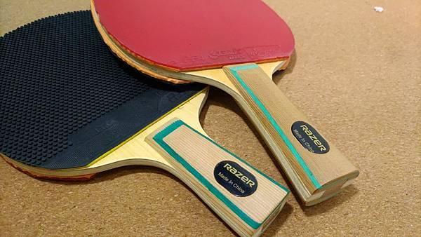 再來説説主角雷蛇L-8。首先,請別被他330元的身價限制了您的想像,這是一把極暴力的球拍。略大的拍型跟中期白色水晶標DHS-08一模一樣,連握柄的設計都一樣略長。此處所謂略長、略大是指相較於BTY標準拍面而言。結構則類似改檜木面材的CL結構加上兩層碳,只是沒染色而已。俗稱開山斧的CL是OFF攻擊拍等級,那再加上兩層磨起來很硬的碳纖維呢?個人感覺L-8的碳纖維層比L-2還堅毅不拔,拍肩怎麼磨都有點刮手。